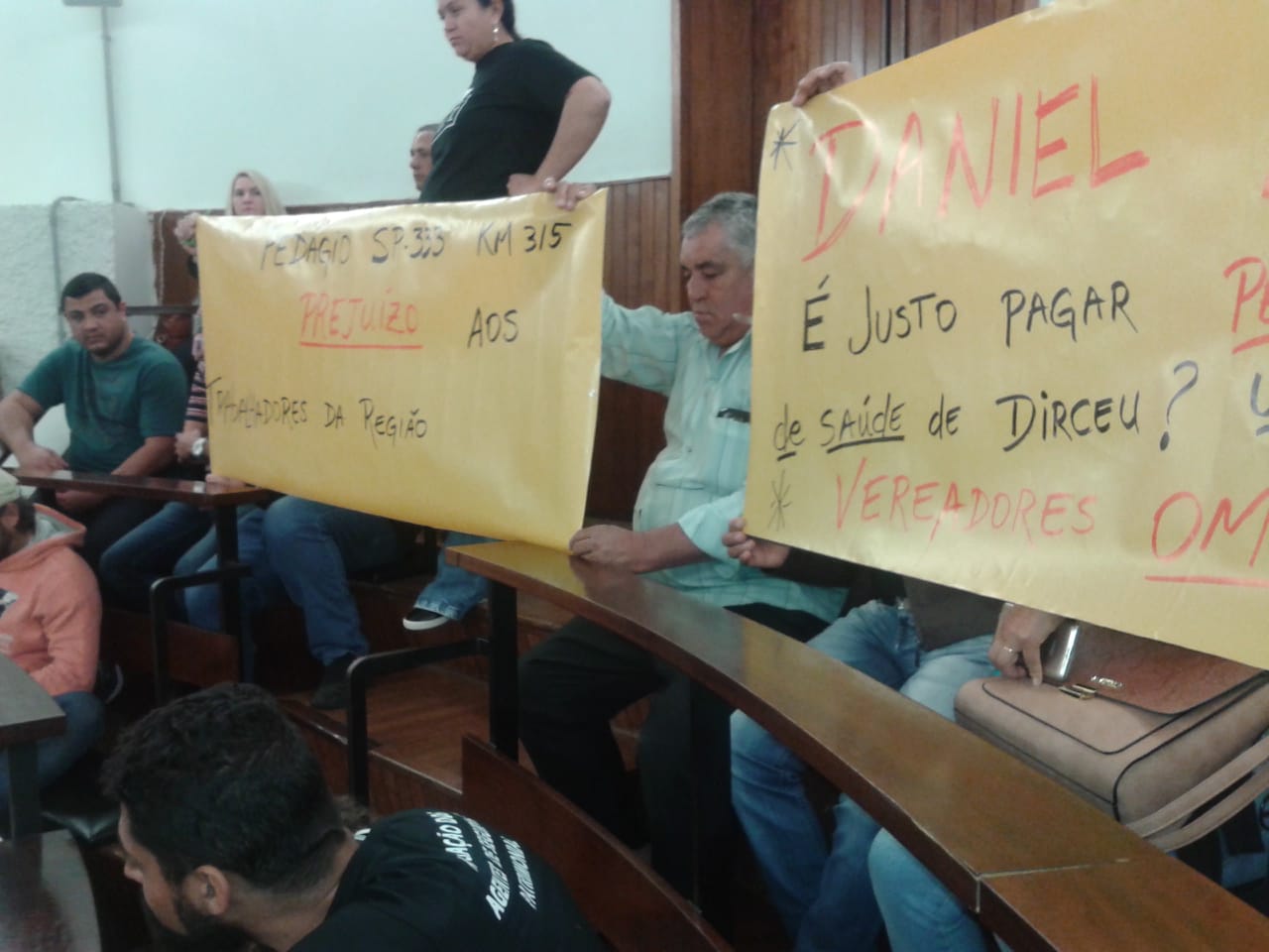 A Câmara de Marília recebeu na segunda-feira (13) mais uma vez manifestantes que ficarão “ilhados” pelo pedágio na rodovia SP-333 prestes a entrar em funcionamento. Palavras de ordem, cartazes e mais promessas marcaram a sessão.