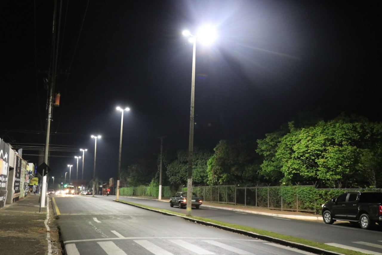 A modernização começou agora nos postes localizados no Trevo da Marilan e após o término desse local seguirá para a zona Norte e praças da cidade.