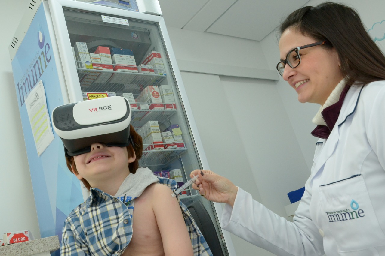 A empresa já disponibiliza para crianças durante a vacinação o VR Box – óculos e vídeo de realidade virtual 360º. Ferramenta buscada no setor de entretenimento que mescla audiovisual e games, colocada à favor da saúde.