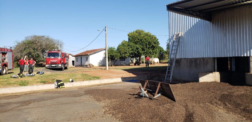 As chamas atingiram o café que estavam em processo de secagem e também os equipamentos. Os funcionários perceberam a situação fora de controle e acionaram os bombeiros.