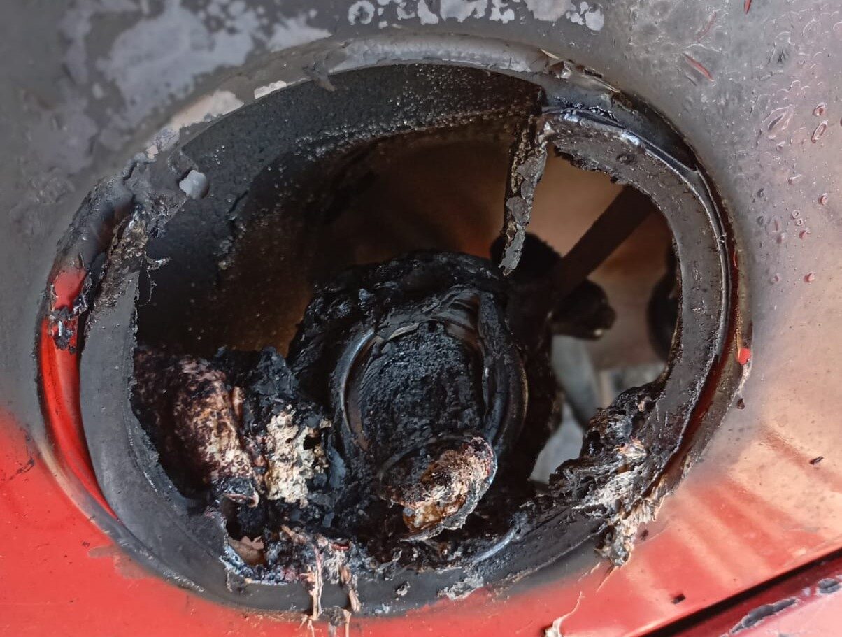 A mulher relatou a certeza de que se trata de crime, já que um pedaço de material inflamável foi encontrado na entrada do duto de abastecimento para o tanque de combustível.