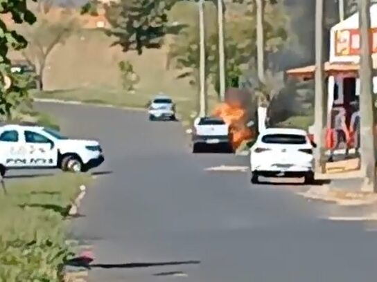 A Polícia Militar e o Corpo de Bombeiros foram acionados em frente a um bar, entre os bairros Paineiras e Alto Cafezal. Pelas imagens é possível ver o incêndio fora de controle; prejuízo ao proprietário do veículo.