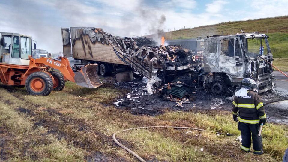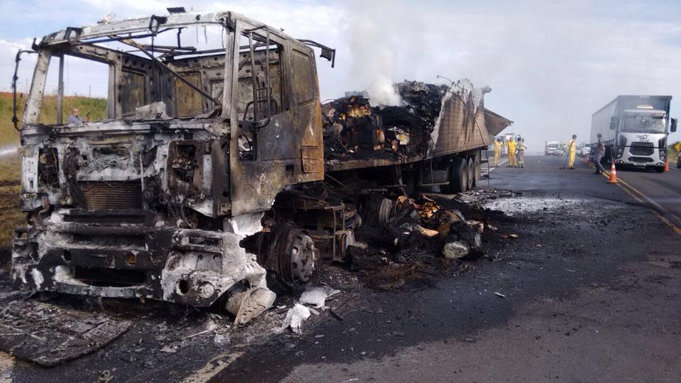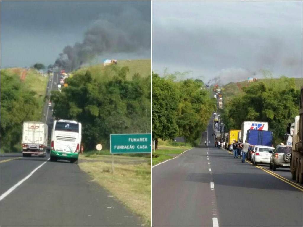 Incêndio em carreta interdita Rodovia SP-333 em Marília