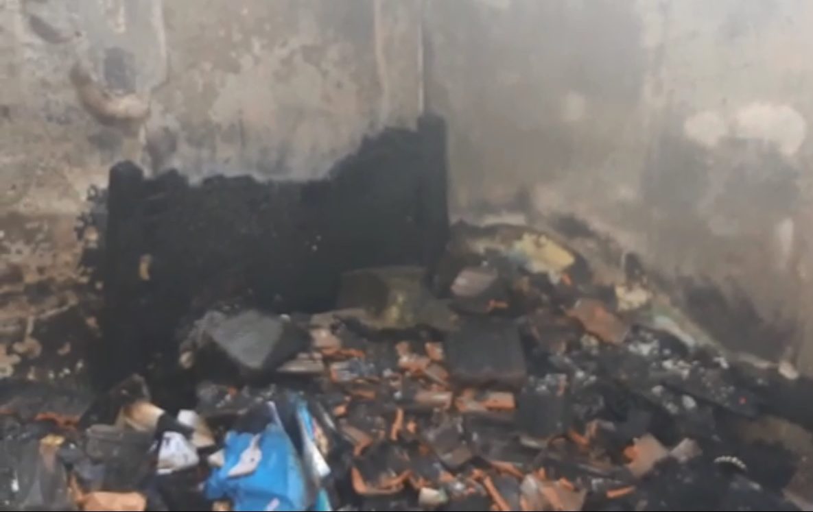 Quarto onde o fogo teria começado; rádio encontrado próximo a uma cama (Foto: Reprodução/Corpo de Bombeiros)