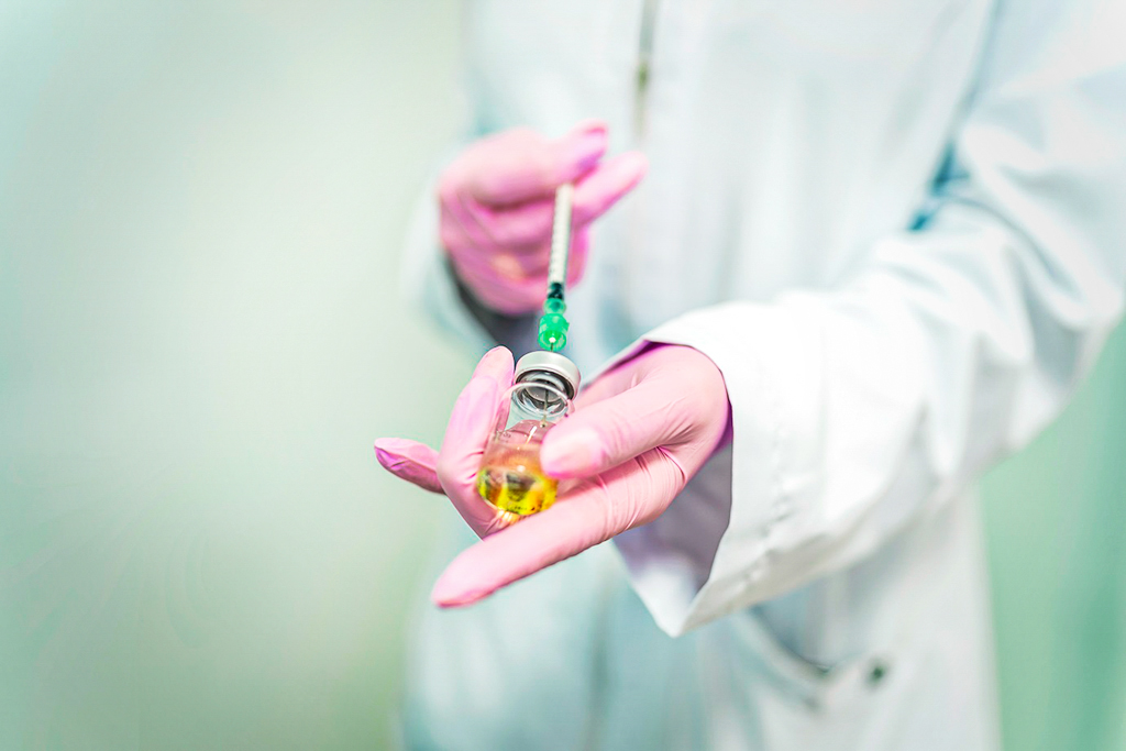 female doctor preparing doses of vaccine against covid19