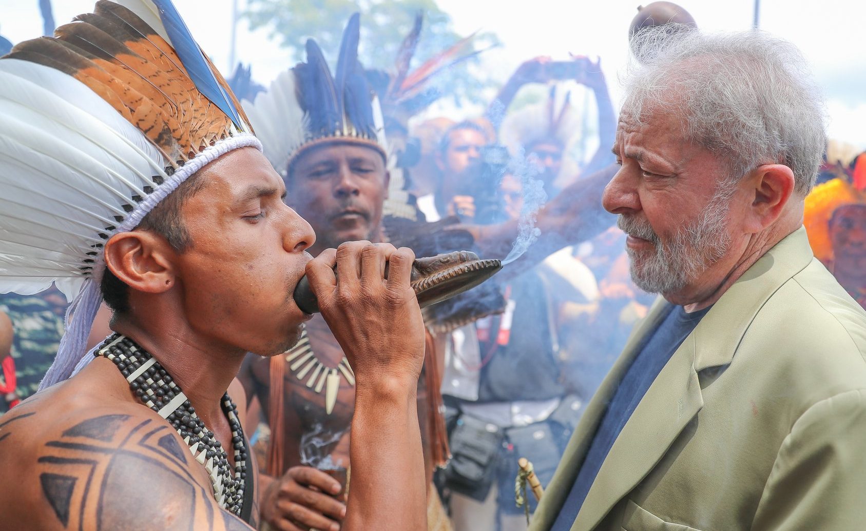 O ex-presidente, condenado a 12 anos e um mês de prisão por corrupção passiva e lavagem de dinheiro no processo do triplex do Guarujá (SP), também recebeu a pauta de reivindicações dos povos indígenas – a prioridade é a demarcação de territórios.