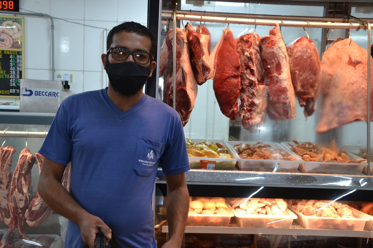 Consumidor faz compra em açougue (Foto: Leonardo Moreno/Marília Notícia)