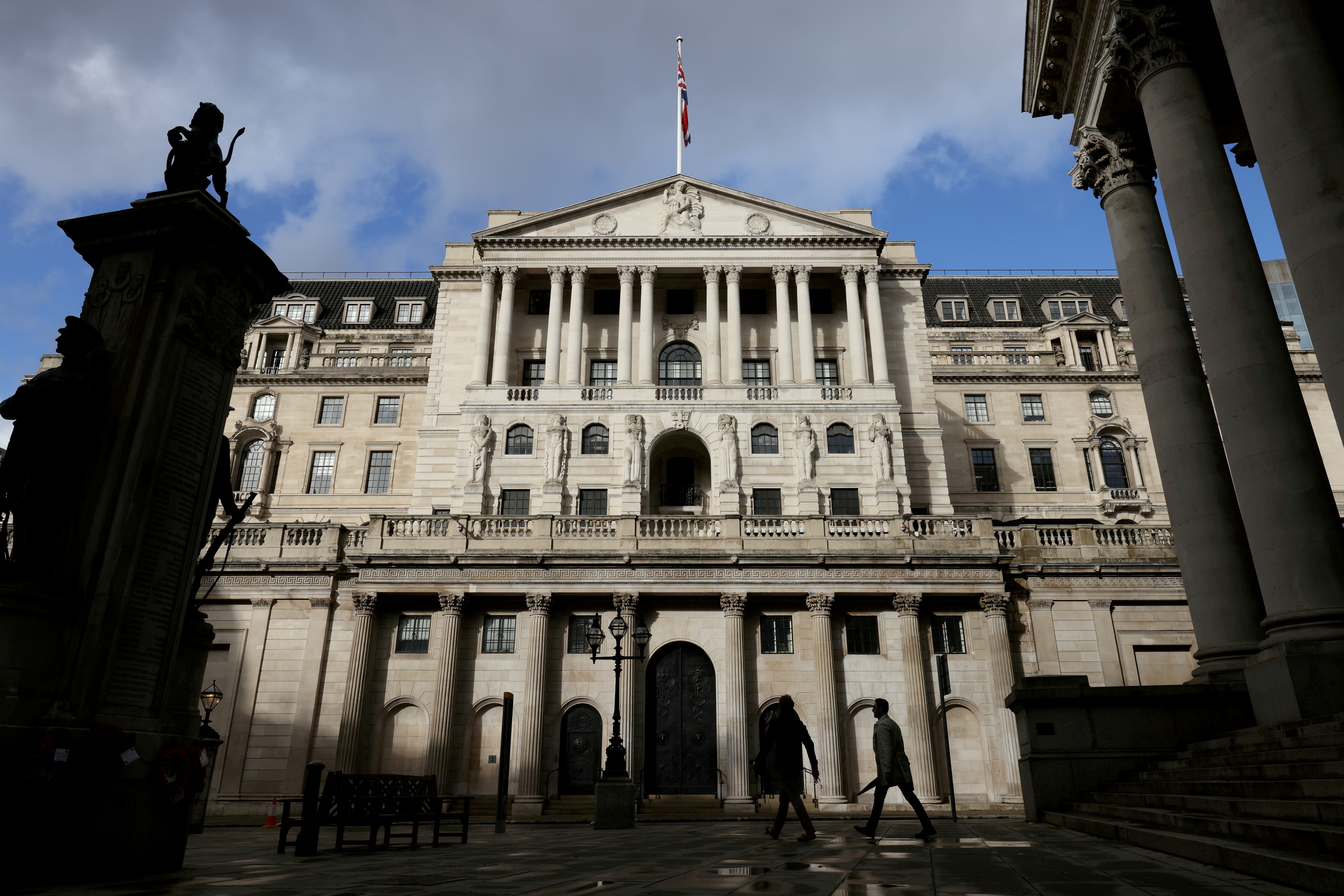FILE PHOTO: People walk past the Bank of England, in London, Britain, October 31, 2021. REUTERS/Tom Nicholson/File Photo