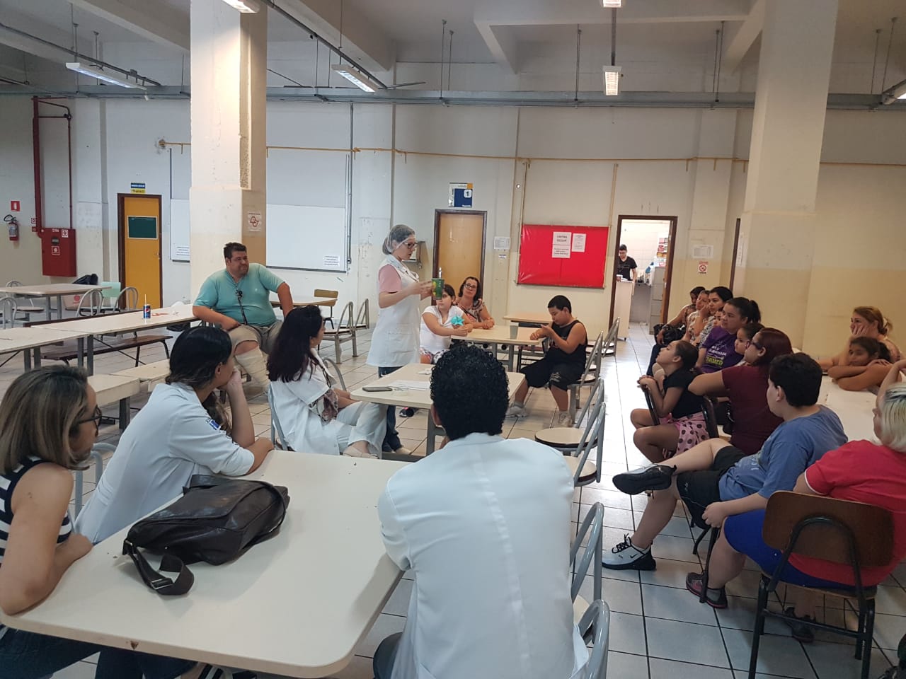 No primeiro encontro, o professor Luiz Fernando Santos Escouto, da Fatec, visitou o Caoim e desenvolveu juntamente com a nutricionista do serviço, Michelle Righetti, uma atividade dinâmica para alertar sobre as quantidades e freqüências ingeridas, de alguns alimentos.
