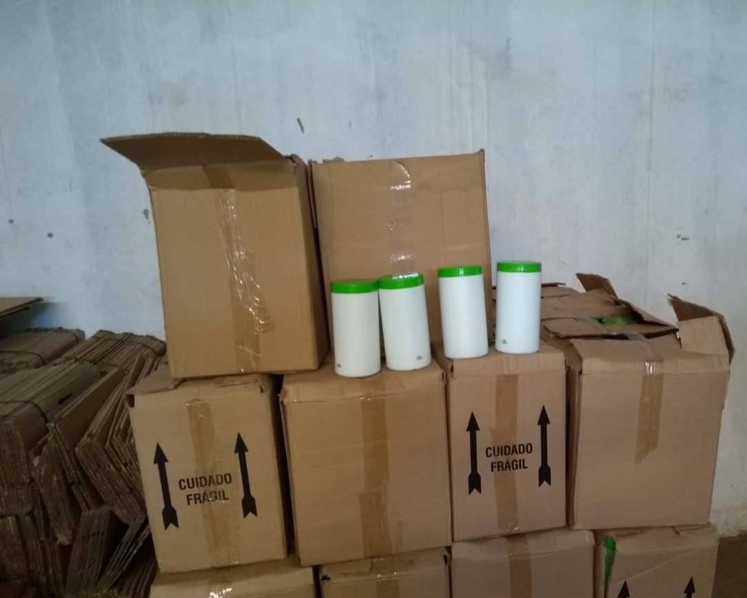 Algumas unidades foram separadas e passarão por análise e perícia. O problema era que os frascos estavam sem informações sobre os produtos e também foram encontrados vários rolos de rótulos que seriam aplicados em unidades vazias.