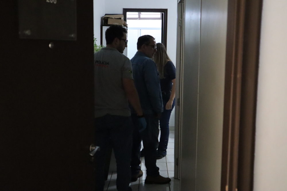 Delegado Luís Marcelo Perpétuo Sampaio e equipe da Polícia Civil no apartamento em que idoso foi morto no Centro de Marília (Foto: Alcyr Netto/Marília Notícia)