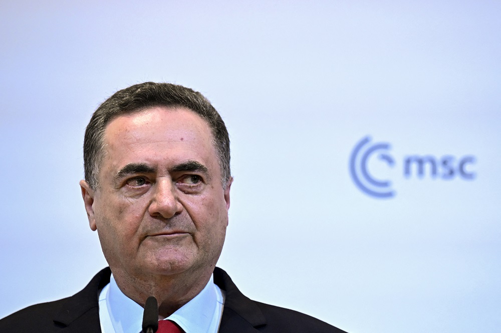 Israel's Foreign Minister Yisrael Katz delivers his speech during the 60th Munich Security Conference (MSC) at the Bayerischer Hof Hotel in Munich, southern Germany on February 16, 2024. (Photo by Tobias SCHWARZ / AFP)