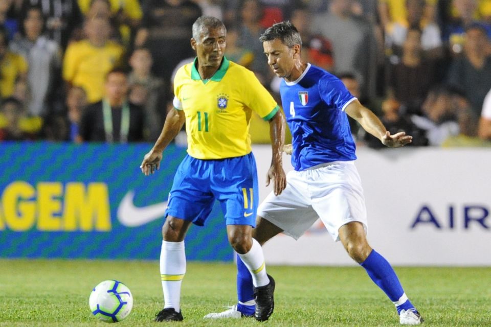 O clima “retrô” foi a característica mais marcante do evento que marcou a volta da seleção brasileira de masters, na noite desta quinta-feira, num jogo festivo contra a Itália em alusão à final da Copa do Mundo de 1994. Em campo, o retorno da famosa dupla de ataque formada por Bebeto e Romário, campeã e consagrada naquele ano com a camisa amarela, ajudou a aplacar a saudade do público presente ao Estádio Presidente Vargas, em Fortaleza, de uma era em que os grandes ídolos do futebol estavam mais para “lendas” do que para “astros”.