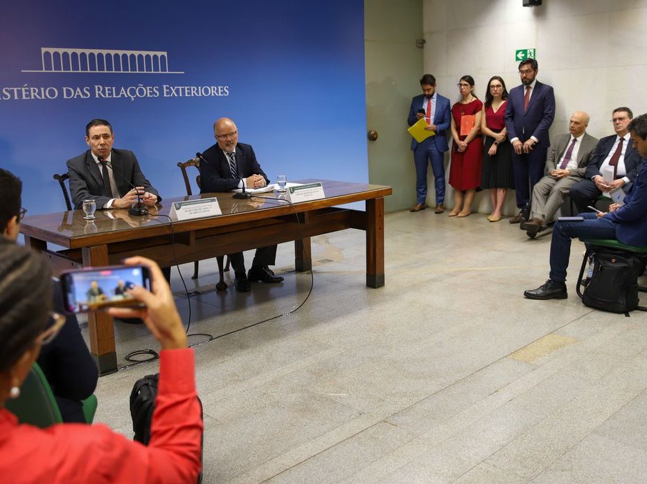 “Recebemos esta informação. Estamos procurando verificá-la, mas ainda não temos confirmação”, comentou o secretário de África e Oriente Médio do Itamaraty, embaixador Carlos Sérgio Sobral Duarte (à esquerda), durante uma coletiva de imprensa pela manhã, no ministério.