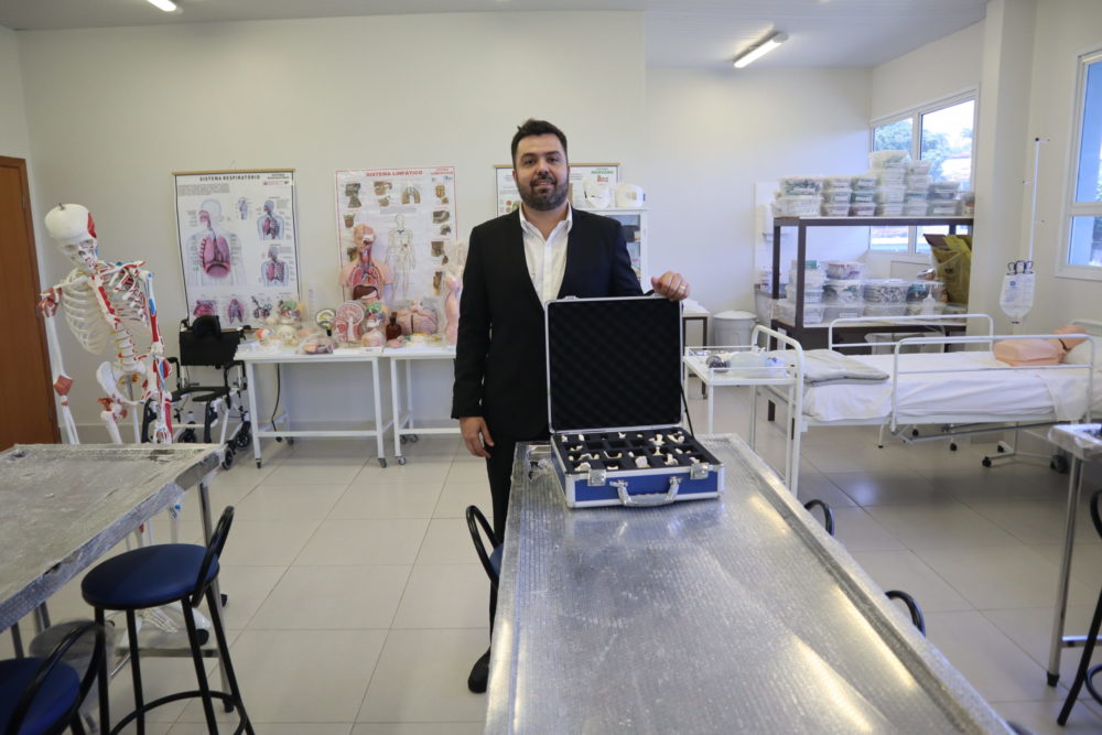 Diogo Chiaradia no laboratório de enfermagem do ITEC Marília (Foto: Alcyr Netto/Marília Notícia)