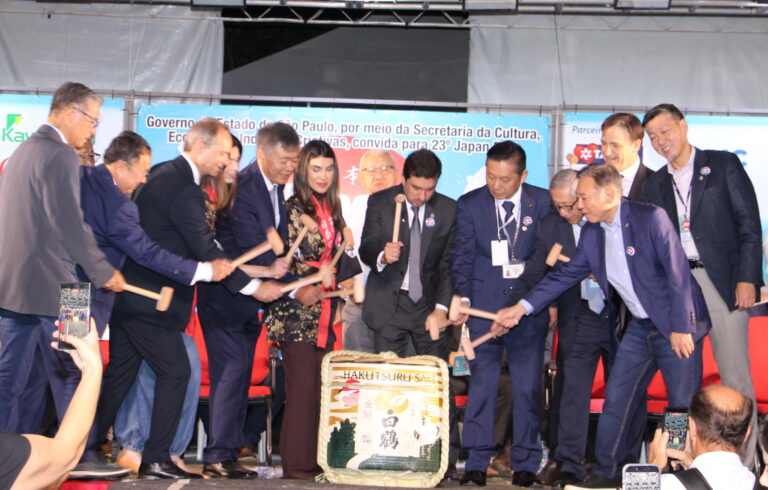 Um dos momentos mais simbólicos da noite foi a realização do tradicional Kagami Biraki, ritual japonês que simboliza a abertura de um novo ciclo. A cerimônia consiste na quebra da tampa de um barril de saquê (taru), utilizando martelos de madeira, representando prosperidade, sorte, harmonia e união.