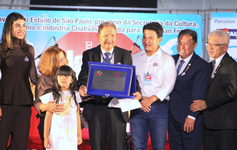 Evento contou com homenagens à personalidades que contribuíram para o fortalecimento da cultura japonesa em Marília e região, reconhecendo trajetórias dedicadas à preservação das tradições e ao desenvolvimento da comunidade, como o empresário Noboyushi Miyabara; médico Goro Takamitsu e também o prefeito da cidade de Izumisano, Hiroyassu Chiyomatsu.