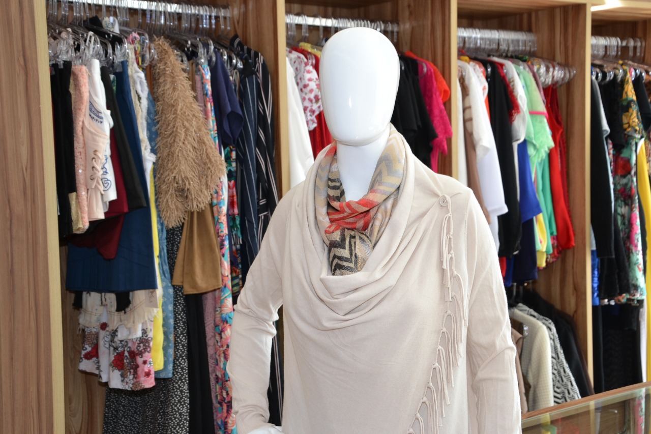 A J’Áquila Boutique trabalha com todos os tipos de roupas da moda casual para mulheres, além de acessórios como brincos, colares, cintos, bolsas e carteiras. Na compra de uma calça e mais uma blusa, a segunda peça tem desconto de 20%.