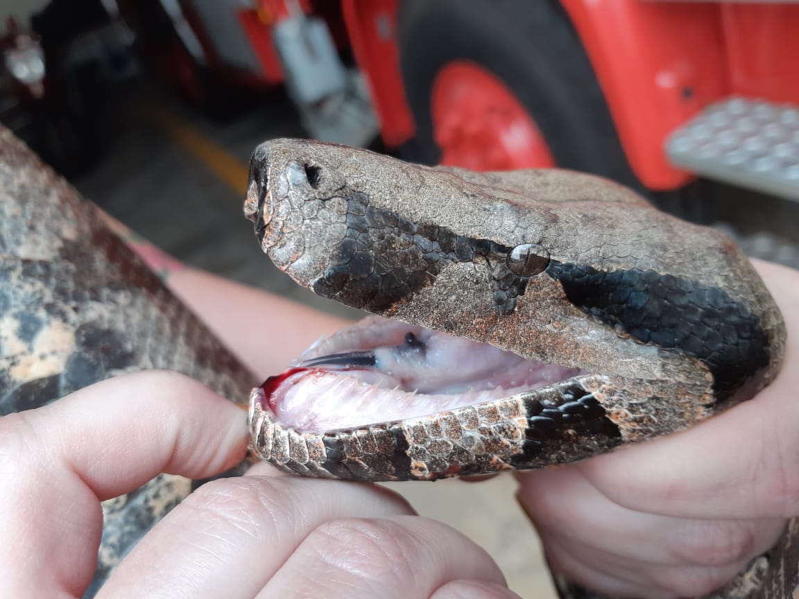 Cobra teve apenas fissura na boca (autoprovocada), em função de botes quando era transportada (Foto: Divulgação/Corpo de Bombeiros)
