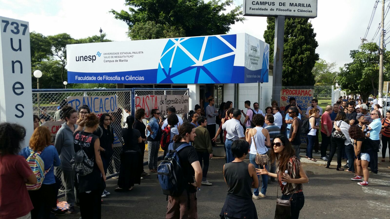 No local, um grupo de manifestantes fechou o portão principal da Unesp de Marília desde as primeiras horas da manhã.