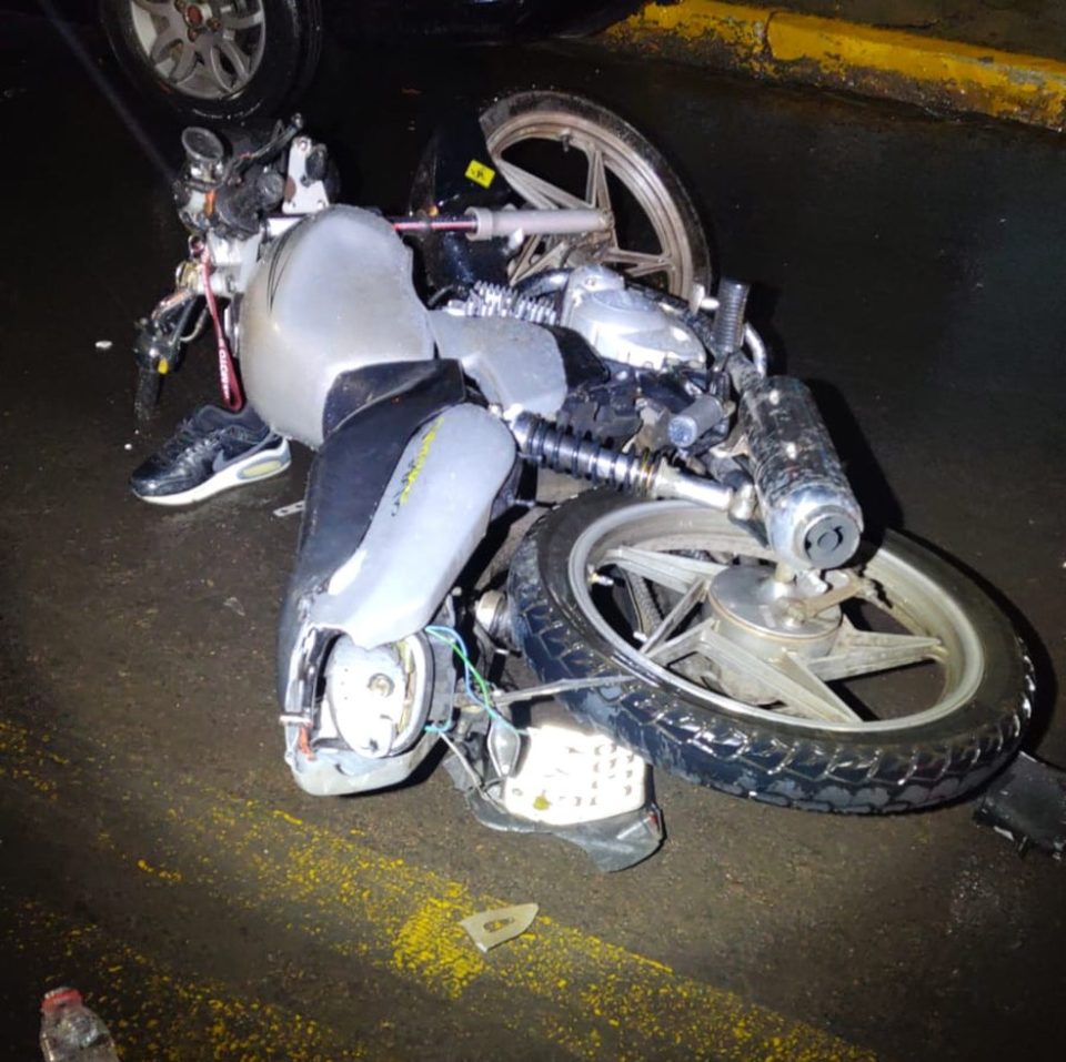 A moto foi arremessada e ainda colidiu com outro veículo que vinha na mesma via, mas em sentido oposto.