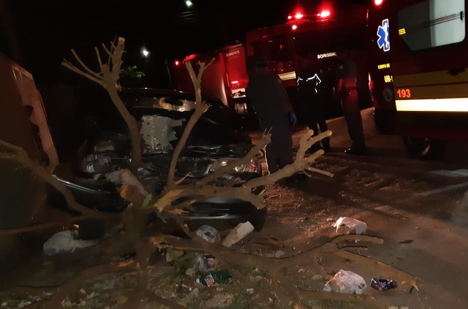 Uma mulher de 21 anos ficou ferida após acidente na noite desta quarta-feira (20). A colisão com uma árvore aconteceu na rua Lúcia Raspante, no Jardim Renata, zona Norte de Marília.