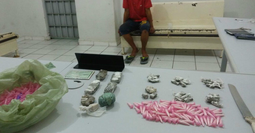 O garoto chegou a correr por alguns metros mas foi rapidamente abordado. A sacola foi recuperada e seu interior continha 28 porções de maconha, 88 pinos com cocaína e 242 pinos vazios.
