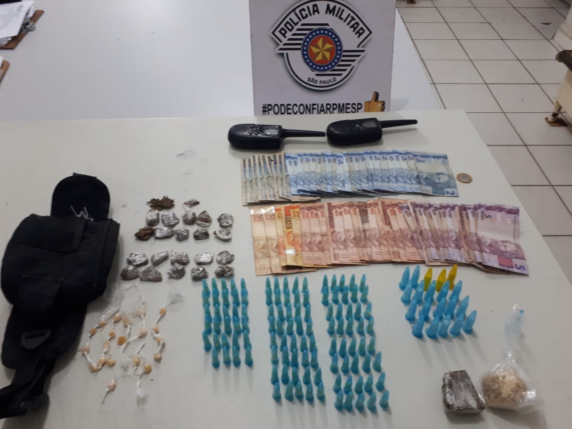 O acusado também estava em posse de dois rádios comunicadores e R$ 245 que seriam produto de tráfico. Foi dada voz de prisão, ratificada no plantão policial, e o indiciado passaria por audiência de custódia.