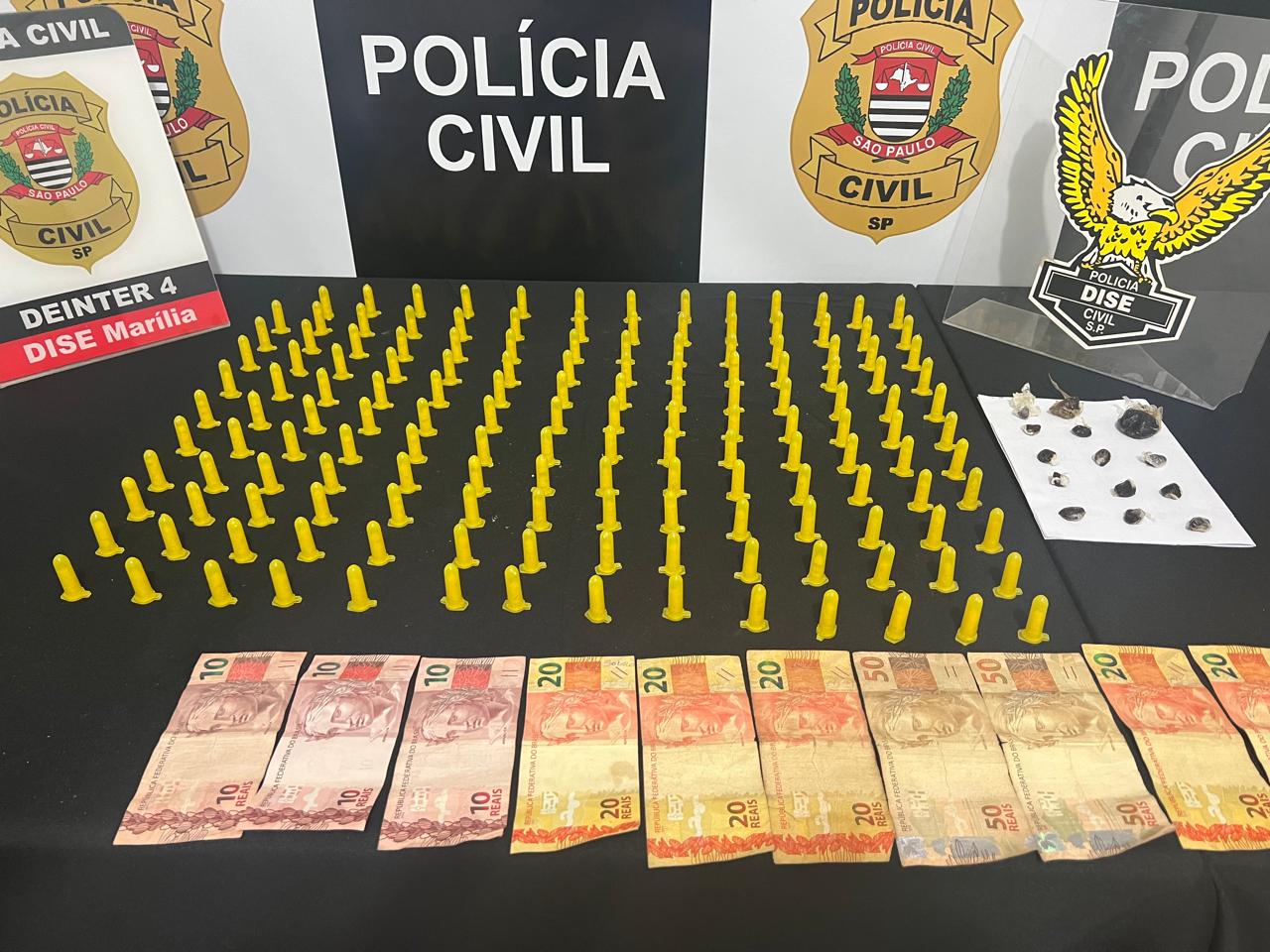 Um jovem de 20 anos foi preso em flagrante por tráfico de drogas na manhã desta quarta-feira (11), no Parque dos Ipês, zona sul de Marília. A ação foi realizada por agentes da Delegacia de Investigações Sobre Entorpecentes (Dise) da Polícia Civil.