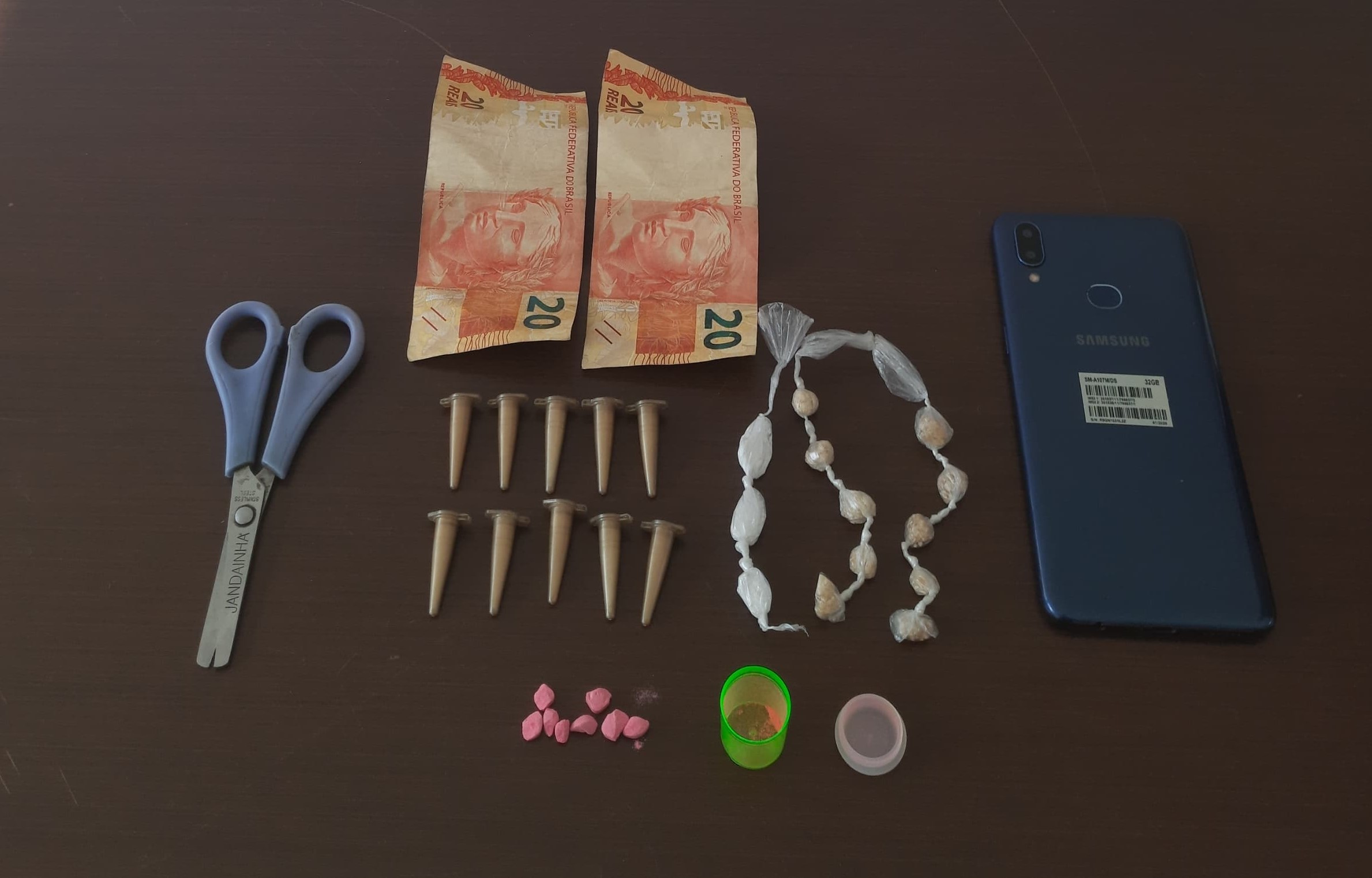 Com o suspeito foram encontrados oito comprimidos de ecstasy, dez pedras de crack, R$ 40, uma tesoura e um aparelho celular.