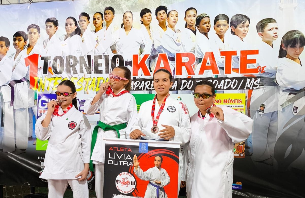 Lívia garantiu o terceiro lugar nas categorias Kata Sub-12 e Kumite Sub-12, representando o município na competição que reuniu mais de 400 atletas de várias cidades dos Estados de Mato Grosso do Sul e São Paulo.