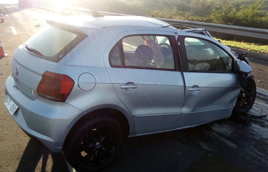 Segundo o policiamento rodoviário, um Volkswagen Gol colidiu contra a traseira de um caminhão que transportava madeira. As causas do acidente ainda serão investigadas.