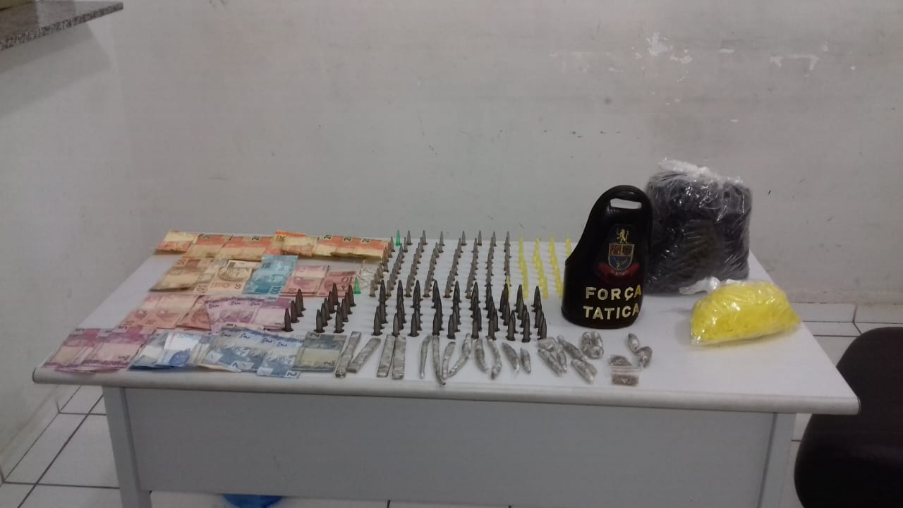A PM recebeu uma denúncia de que indivíduos estariam promovendo o tráfico de drogas na região. Os policiais realizaram um cerco em um apartamento do Núcleo Habitacional e abordaram um adolescente de 17 anos com diversas porções de drogas e R$ 616 em dinheiro.