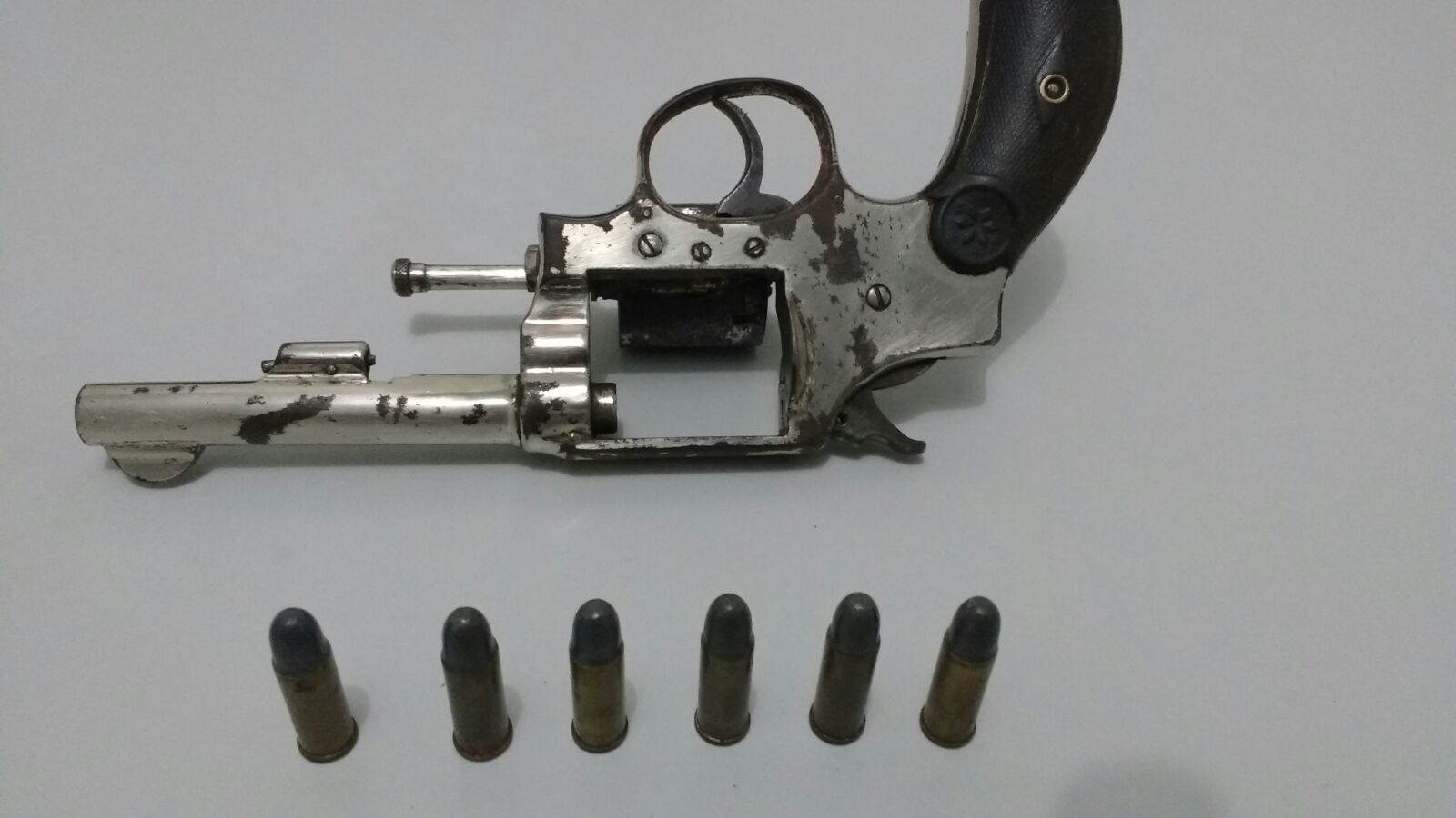 Alan, assim que percebeu que iria ser abordado, jogou um objeto dentro do quintal de uma casa. O objeto na verdade era um revólver calibre 32 com seis munições intactas.