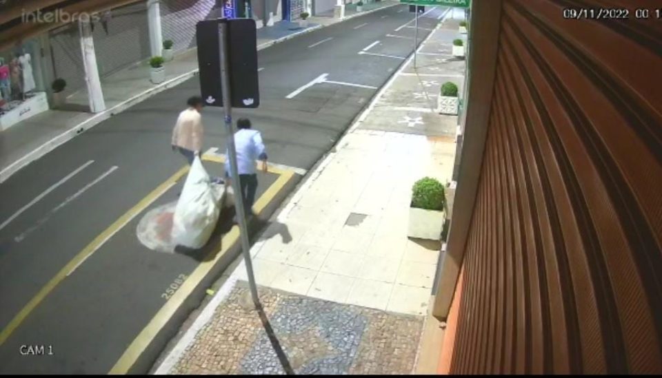 Irmãs arrastaram corpo e o abandonaram na rua Quatro de Abril, no Centro de Marília (Foto: Reprodução/Câmeras de segurança)