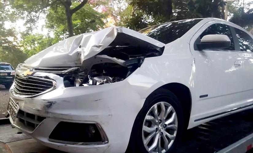 O automóvel foi recolhido no estacionamento do Colégio Dominicano, que fica nas dependências do Santuário Nossa Senhora de Fátima. O carro apresentava a parte da frente e as laterais danificadas.