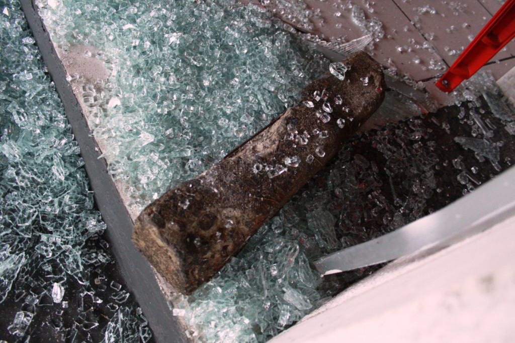 Blindex foi quebrado com pedaço de concreto e fechaduras foram forçadas