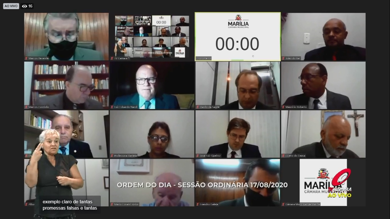 Sessão virtual desta segunda-feira (17) da Câmara de Marília (Imagem: TV Câmara)