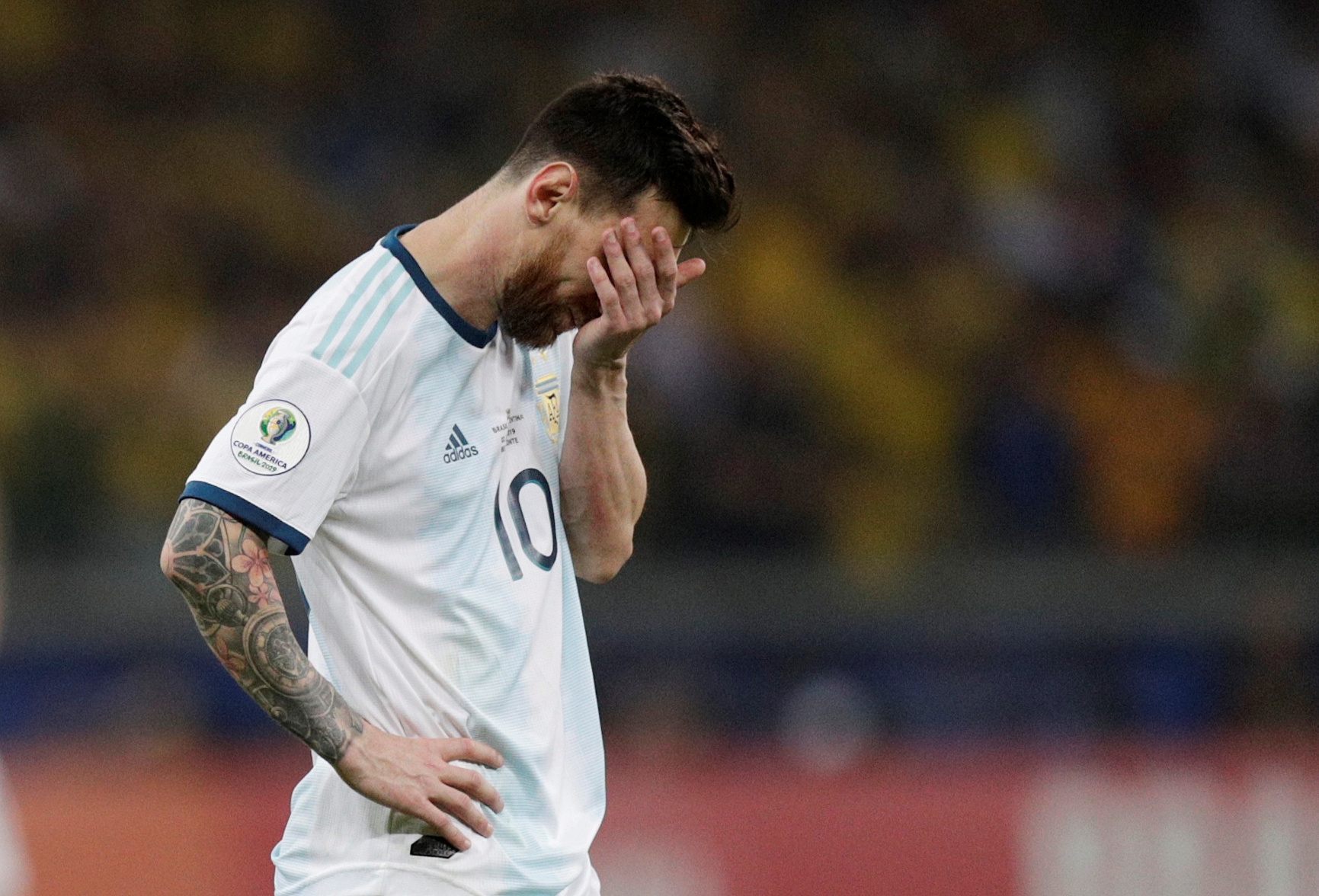 Soccer Football - Copa America Brazil 2019 - Semi Final - Brazil v Argentina - Mineirao Stadium, Belo Horizonte, Brazil - July 2, 2019 Argentina's Lionel Messi reacts REUTERS/Ueslei Marcelino
