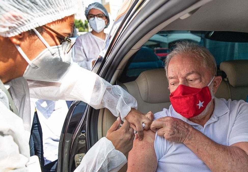 O ex-presidente Luiz Inácio Lula da Silva (PT) recebeu hoje em um posto drive thru de São Bernardo do Campo (SP) a segunda dose da vacina contra a covid-19. As imagens foram transmitidas ao vivo pelo perfil oficial do petista no Twitter.