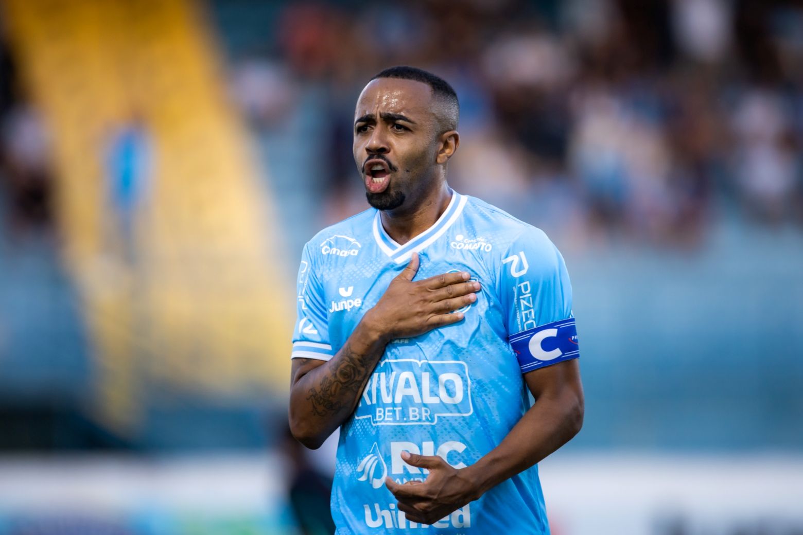 Carlos Alberto comemora o primeiro gol do MAC no duelo contra o Desportivo Brasil (Foto: Divulgação/Matheus Dahsan)