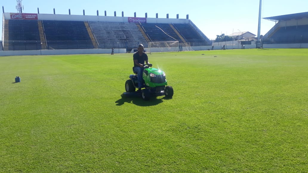 Gramado sendo preparado para a partida deste sábado no Abreuzão (Foto: Divulgação)