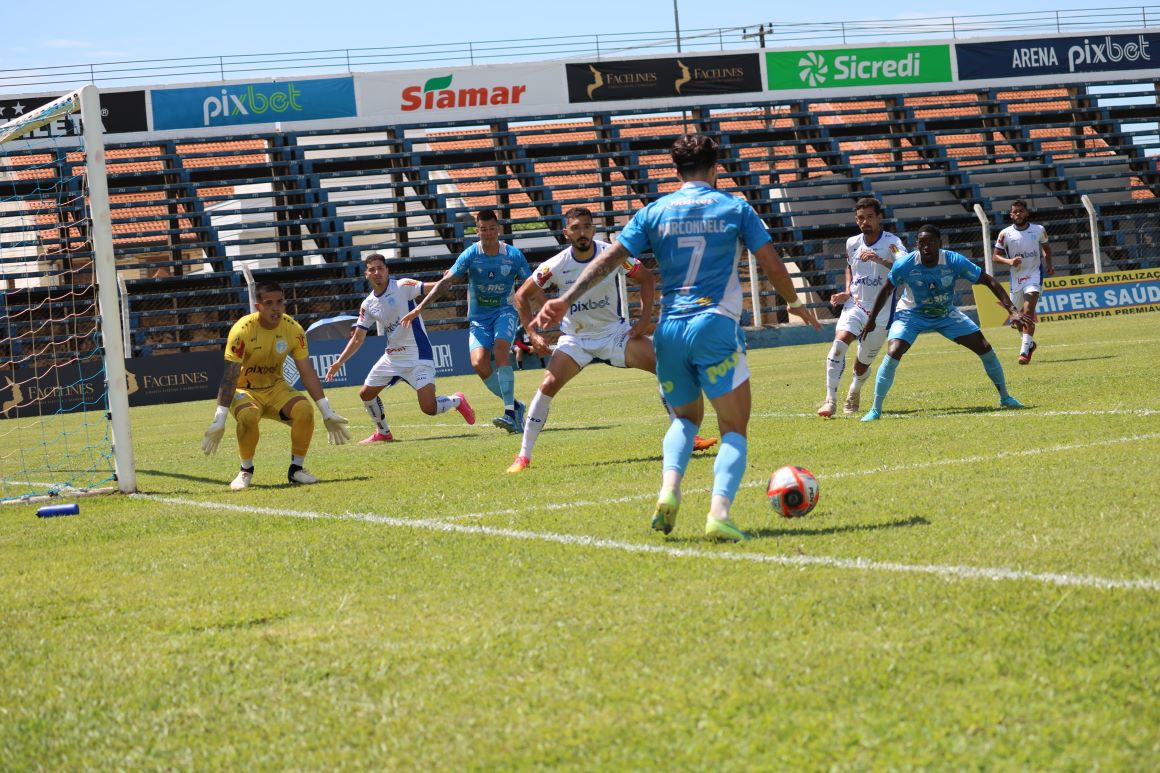 Jogada de Marcondele na linha de fundo que terminou com o gol de Lucas Lima (Foto: Divulgação/Lucas Daquino/Marília AC)