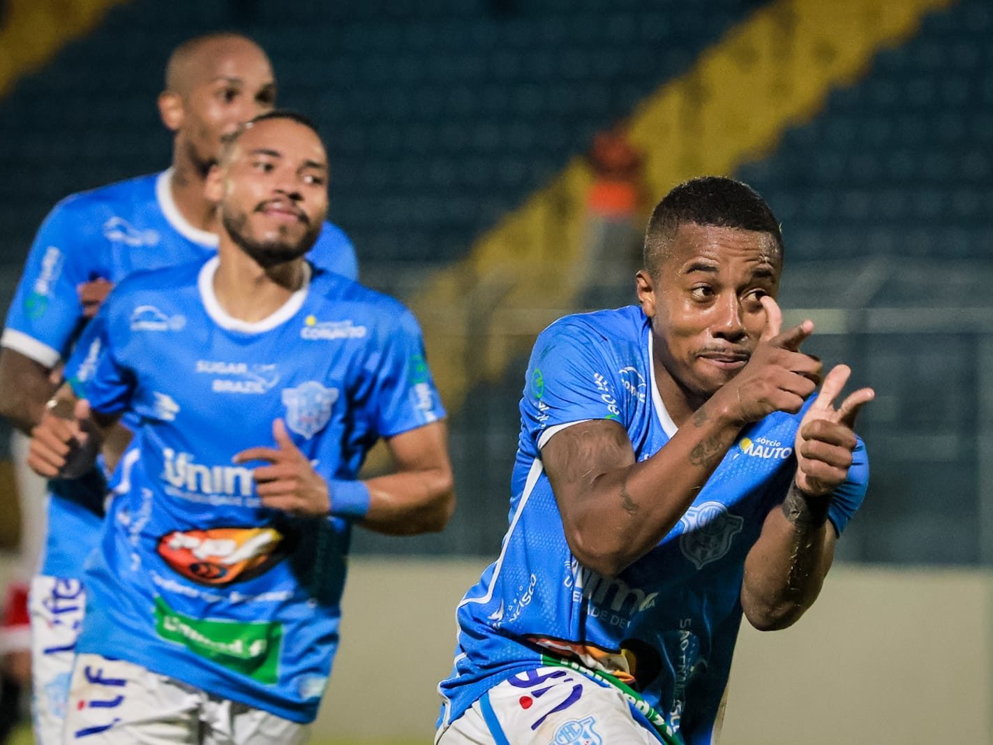 O gol do Alviceleste saiu no final do primeiro tempo. Aos 41 minutos, o meia João Lucas deu ótimo passe para Franklin bater na saída do goleiro Douglas e abrir o placar.