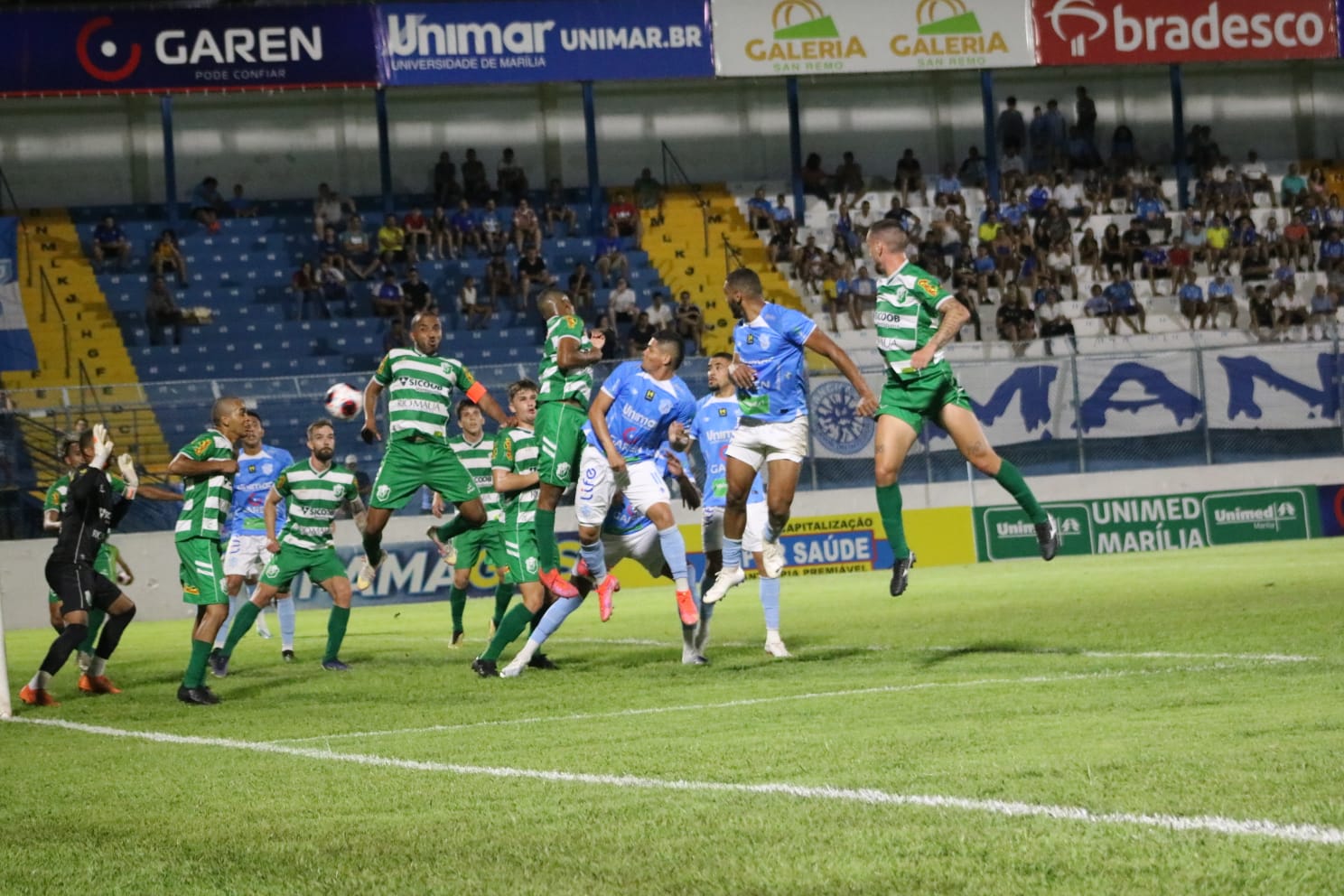A primeira grande chance do jogo surgiu aos 25 minutos da primeira etapa, que não foi desperdiçada pelo adversário mariliense. Em jogada pela esquerda, Vinícius Leite encontrou a passagem do atacante Caíque, que recebeu livre. Ele ganhou de Guilherme Teixeira na corrida e estufou a rede do goleiro Passarelli, que não conseguiu evitar o gol do Rio Preto.