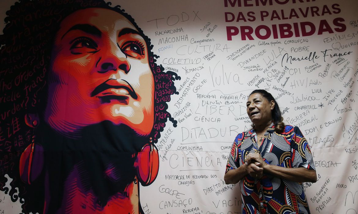 A advogada Marinete da Silva, 71 anos, mãe da vereadora Marielle Franco, assassinada em março de 2018, esteve no início da tarde desta sexta-feira (10) na sede da Empresa Brasil de Comunicação (EBC), em Brasília. Marinete visitou o Memorial das Palavras Proibidas, que tem um painel com a ilustração do rosto da filha.