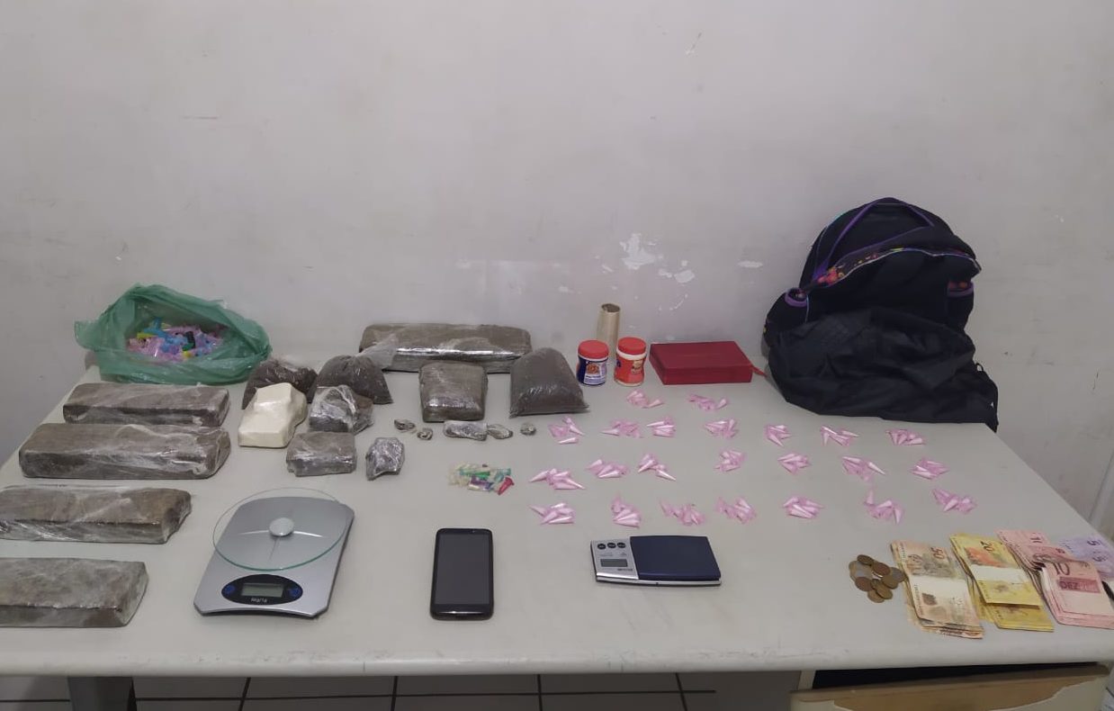 No momento em que o rapaz notou a presença da equipe policial, ele abandonou a mochila que carregava e correu. Os militares conseguiram abordar somente a mulher com a criança. Com ela havia apenas um celular, porém, na bolsa dispensada, foram encontrados quatro tabletes de maconha.