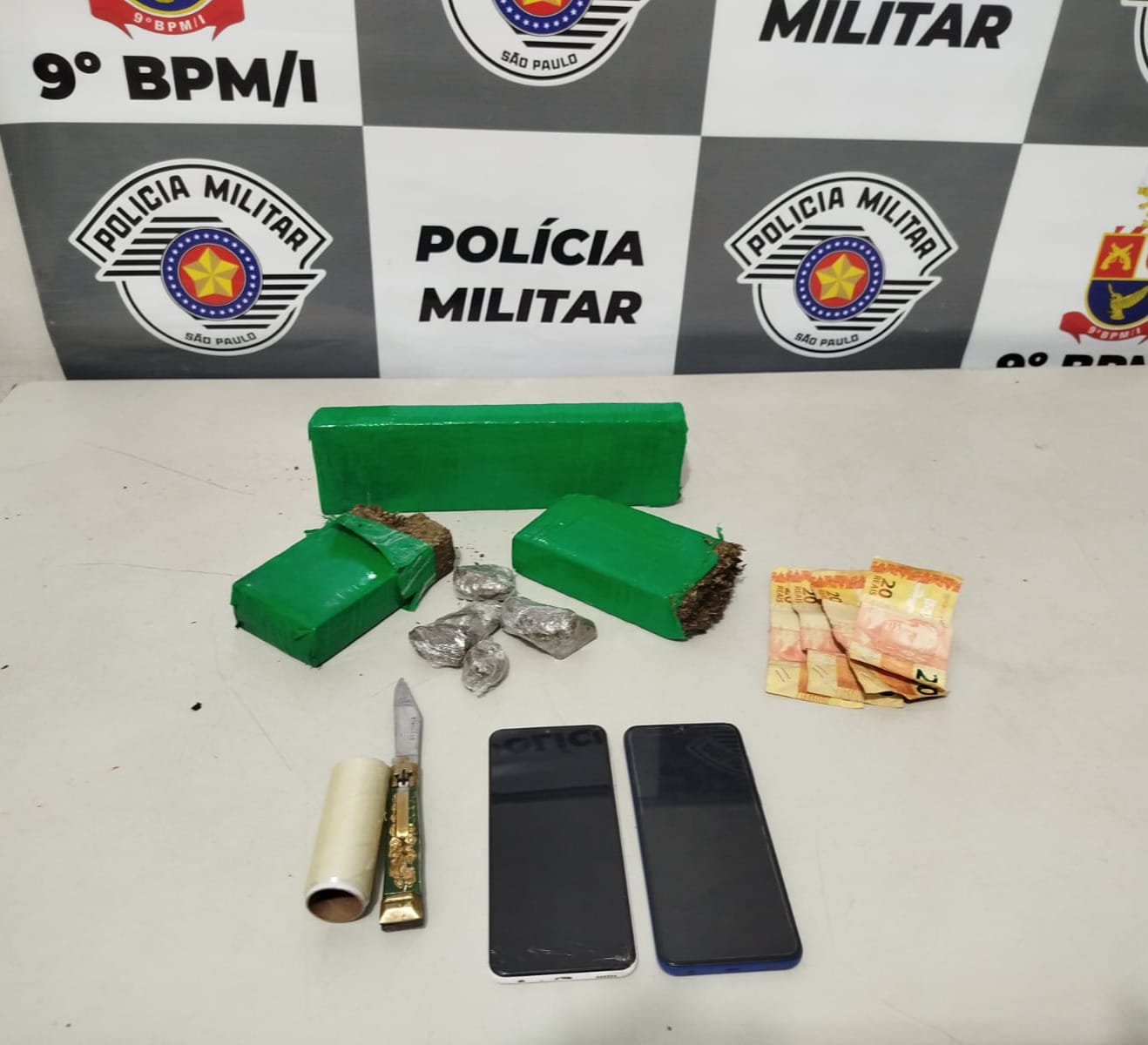 A operação culminou na apreensão de mais de dois quilos de maconha, distribuídas em tabletes e porções embaladas. Além das drogas, também foram confiscados um canivete e dois celulares.