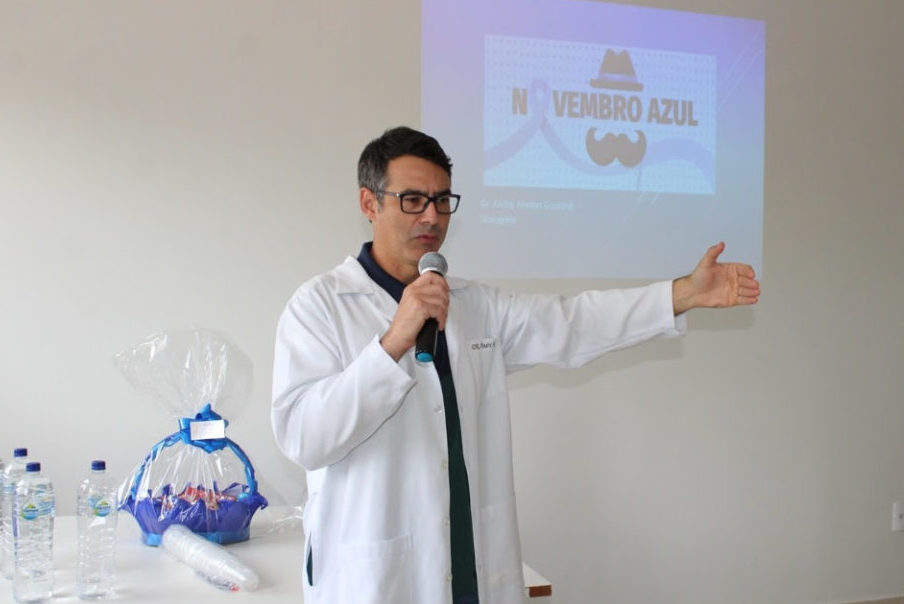 Em palestra realizada aos colaboradores da Santa Casa de Misericórdia de Marília, neste dia 24 de novembro, no Complexo Ambulatorial “Bento de Abreu Sampaio Vidal”, o médico urologista André Guzzardi informou que “36,9% dos diagnósticos de câncer em homens são de próstata”.