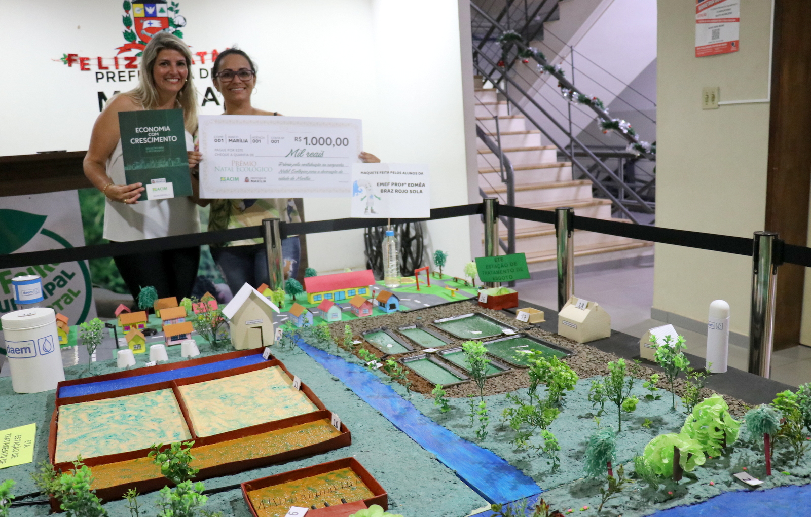 A maquete que tem como tema “O caminho das águas” foi confeccionada por alunos dos 4º anos do Ensino Fundamental I da EMEF Profª. Edmea Braz Rojo Sola na Zona Norte de Marília, com supervisão das professoras Elaine Siqueira de Castro Scombatti e Elizandra Caparros Quinelatto Pais.
